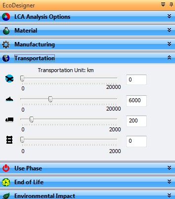 Solid Edge EcoDesigner, vous permet de définir le ou les modes de transport utilisés dans le cycle de vie de votre produit.